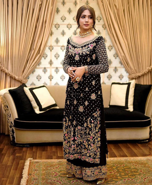 Unique Coloured Faux Georgette with Embroidered Work Gown with Dupatta