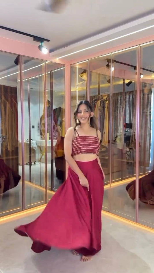 "Elegant French Crêpe Lehenga Set with Sequence Embroidery"