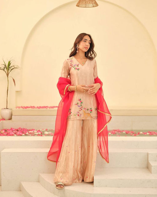 "Elegant Chinon Sequence Embroidered Sharara Set with Dupatta"