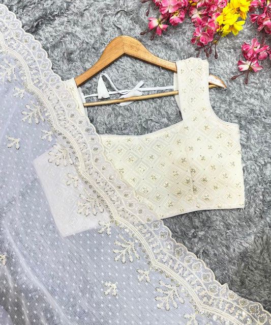 Dual Sequins And Multicoloured Thread Embroidery Saree