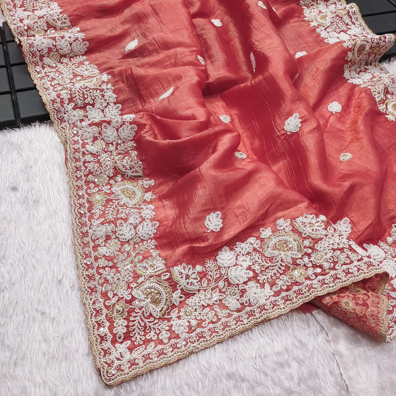 Work: Heavy Embroidery with Coding & Sequins, finished with a Fancy Cutwork Border