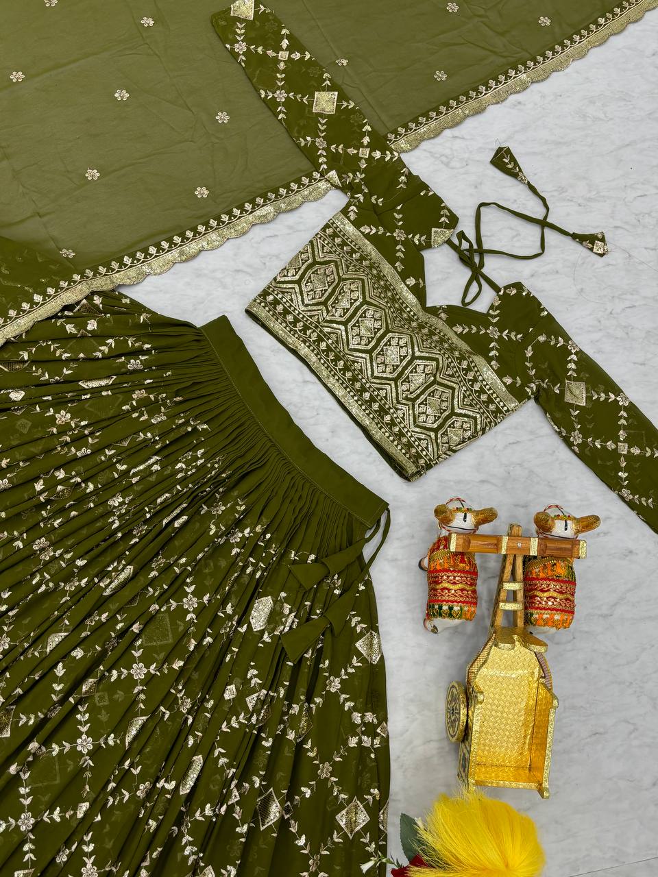 This stunning Festival Lehenga Choli setΒ features beautiful embroidery sequence work on Heavy Fox Georgette fabric. The lehenga comes with a full flair of 3.50 meters, and the dupatta is crafted with the same elegant sequence embroidery. Perfect for any festival or celebration, this set combines traditional craftsmanship with modern flair. Available in Wine and Rama colors.