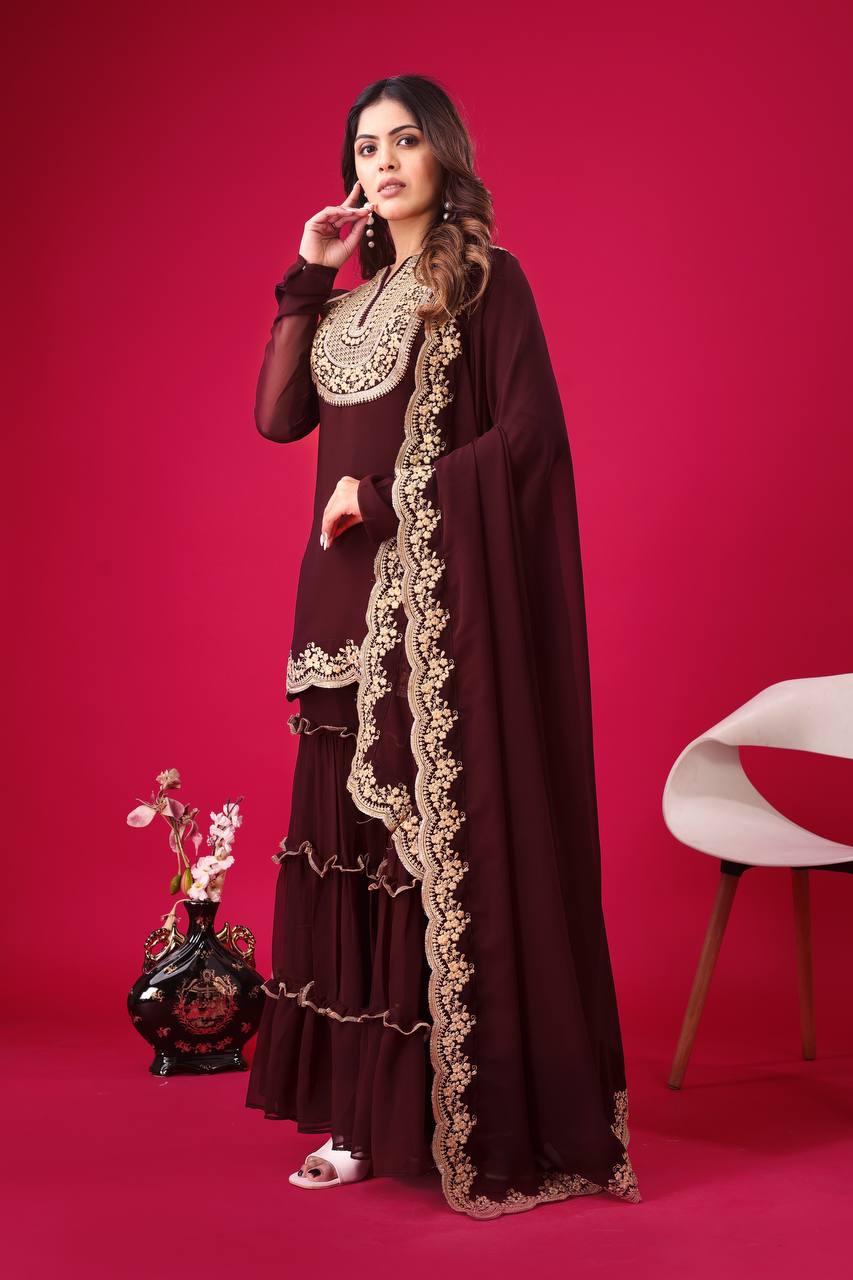 π₯ Presenting New Designer Collection in Blooming Faux Georgette with Heavy Embroidery Sequence Thread Work β Top, Bottom, and Dupatta Set β Fully Stitched, Ready to Wear! ππ₯°