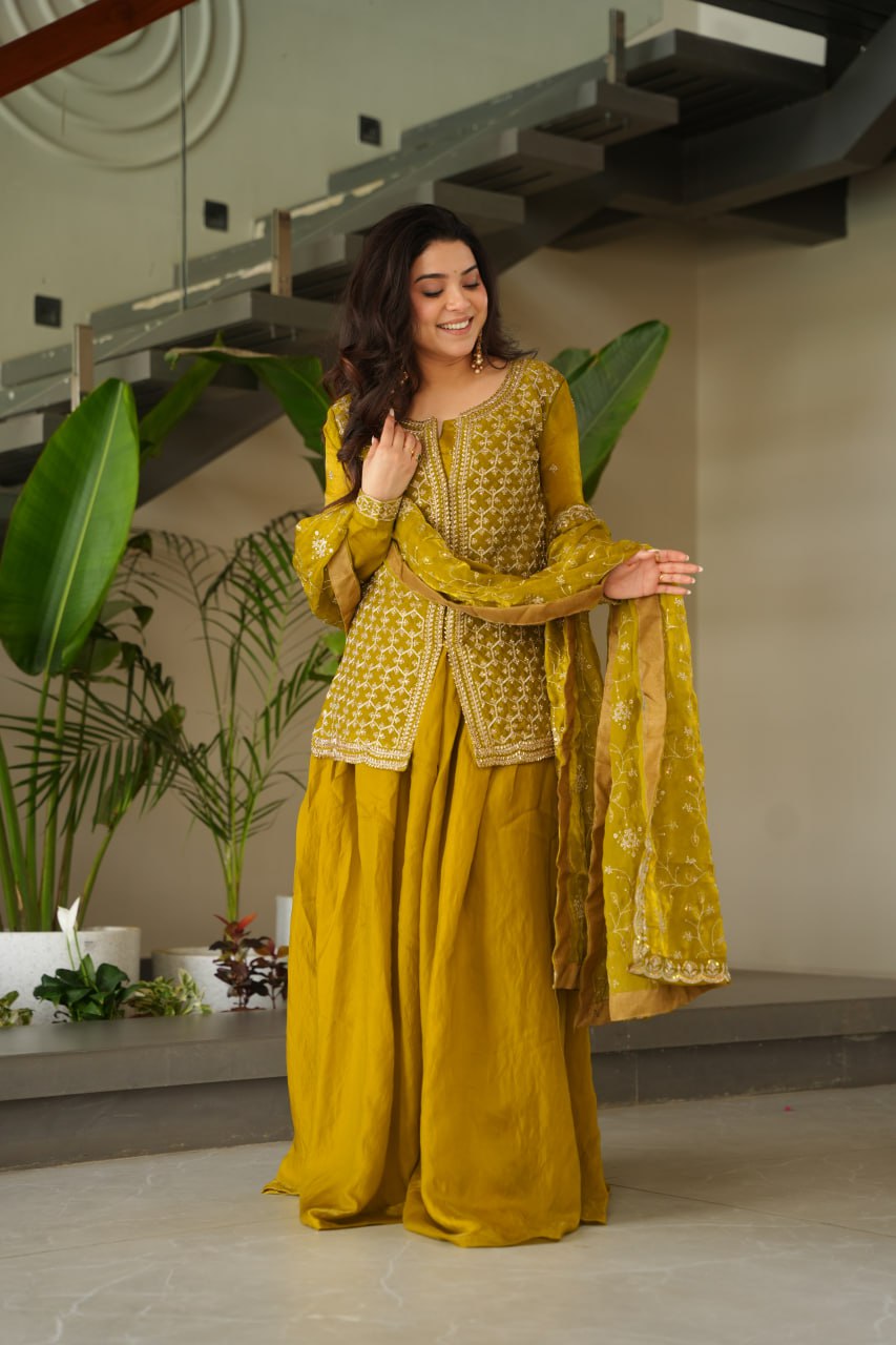 Celebrate this festive season in elegance with our beautifully crafted Fendy Fabric Kurti–Sharara Set featuring Rich Beads and Zari Embroidered Work. Paired with a graceful dupatta, this set is a perfect choice for Raksha Bandhan, weddings, or festive gatherings.