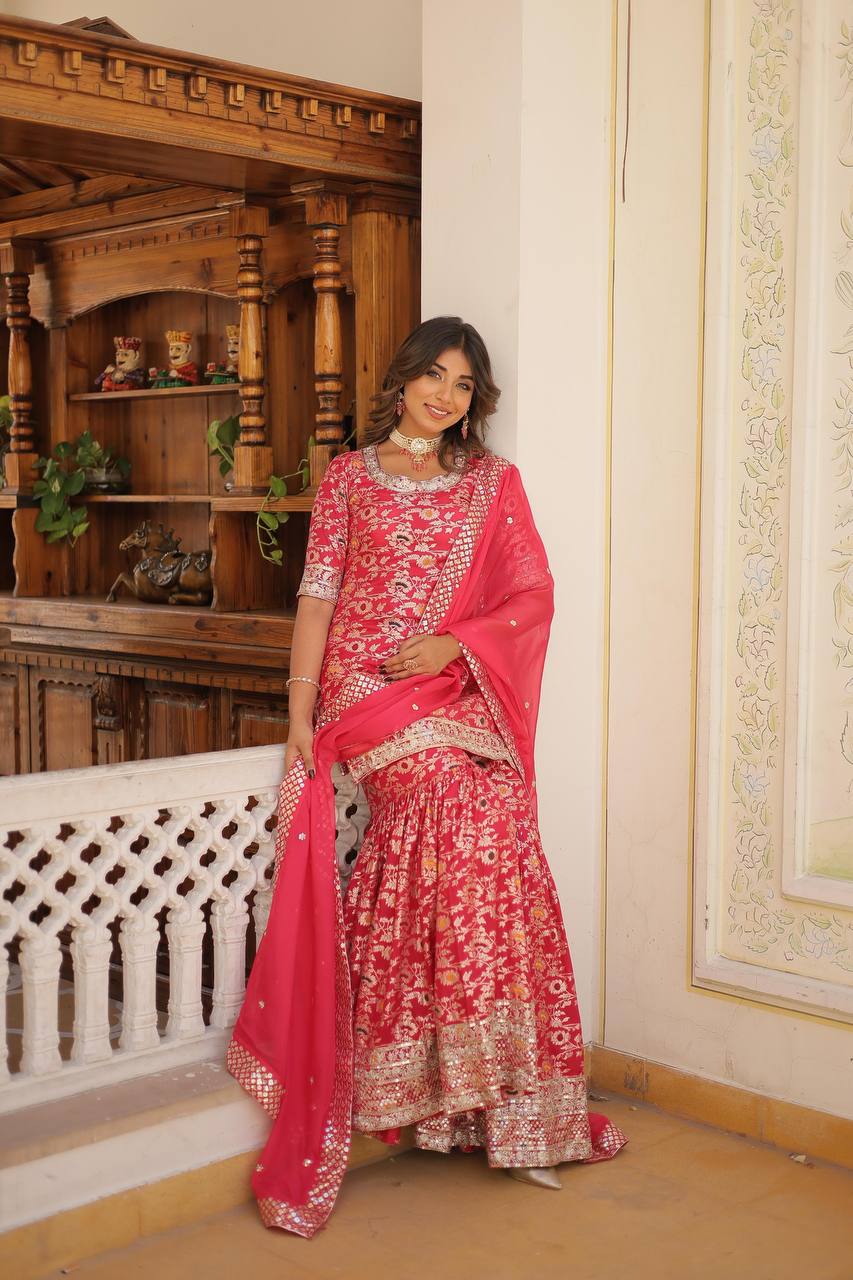 - Fabric & Work: Faux Blooming Fabric featuring intricate Zari Sequins-embroidery