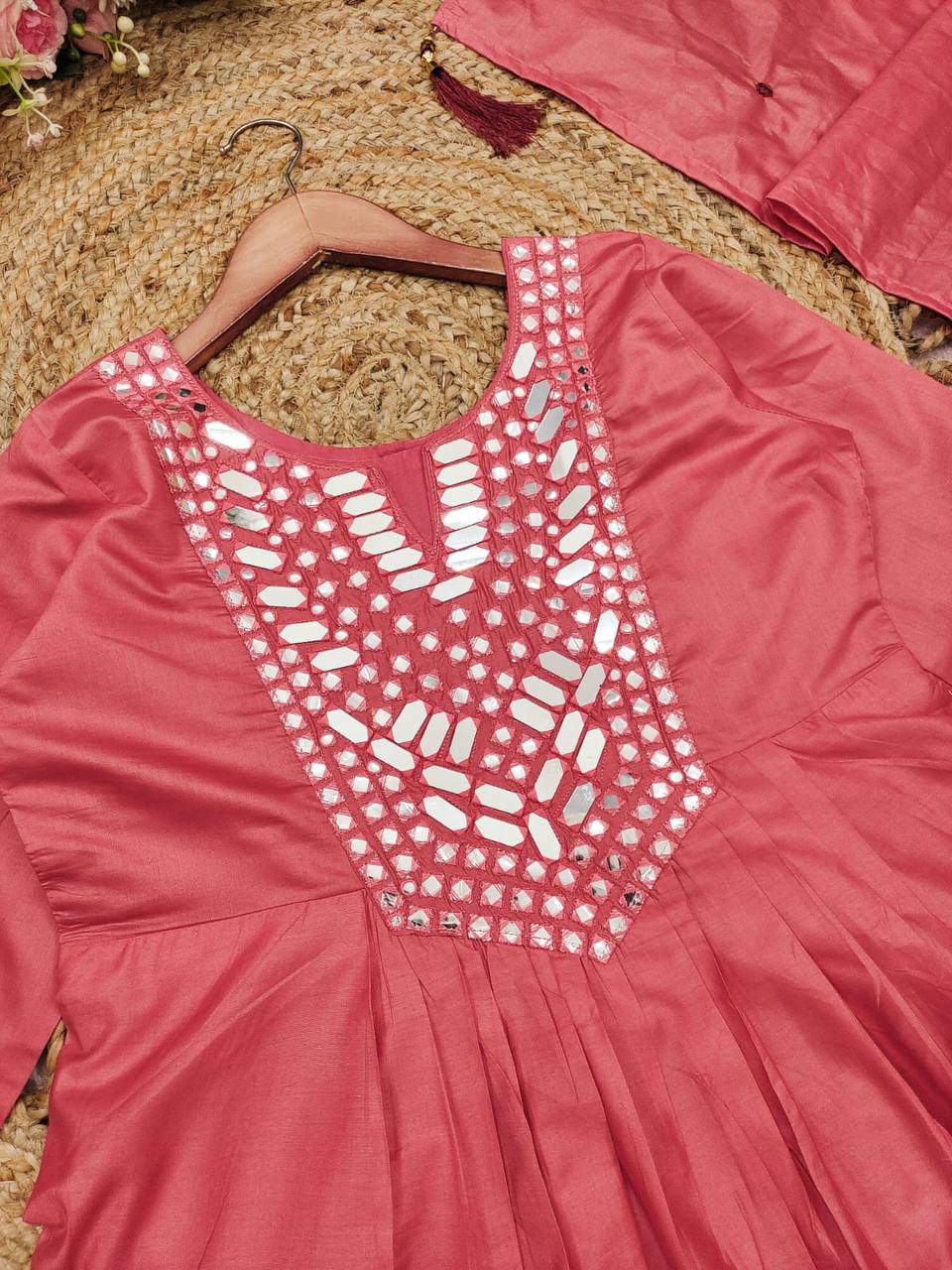 - Sleeves: Embroidery and Mirror Work near the cuffs