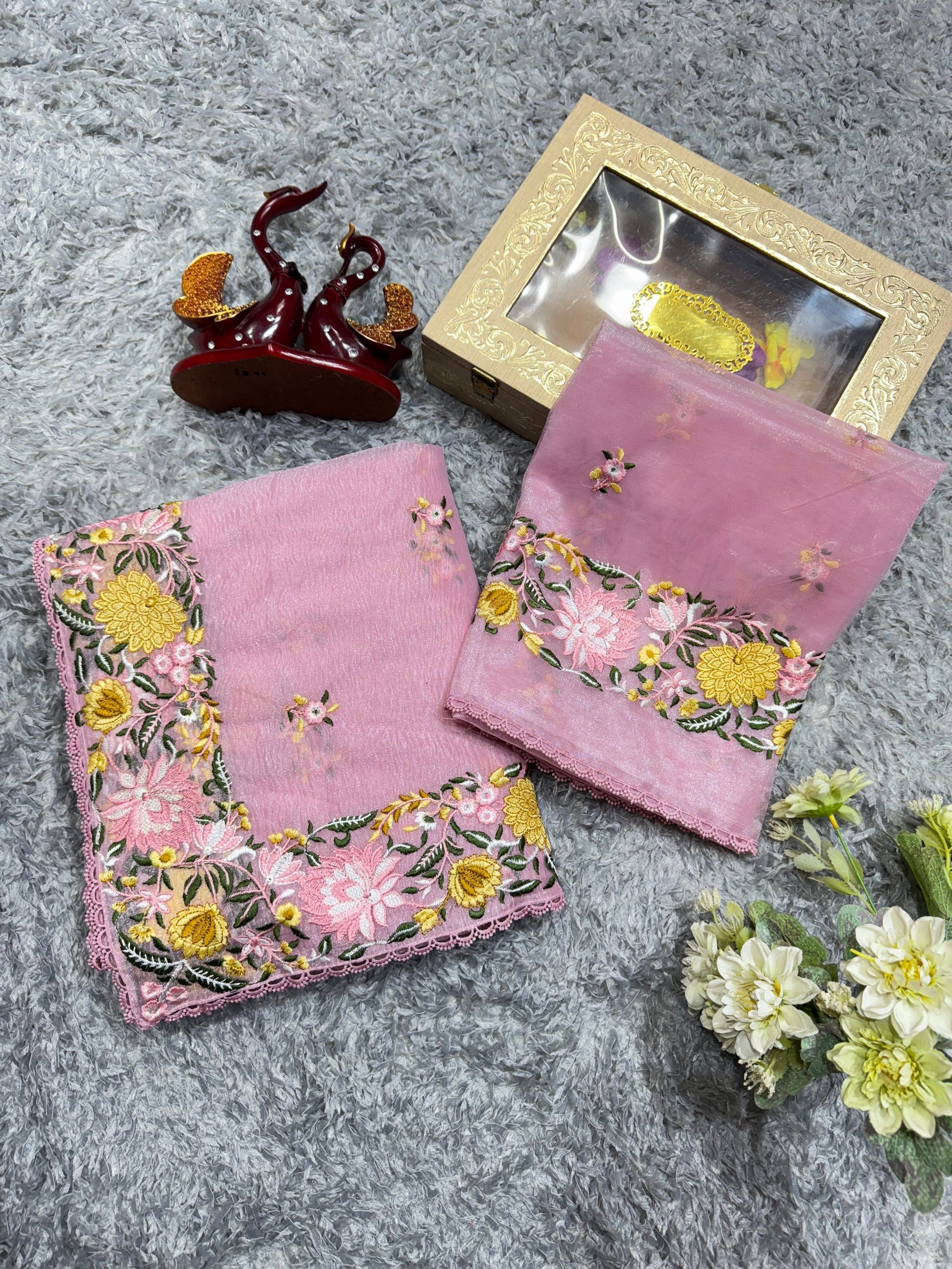 Embroidery Work: Stunning multicolored thread embroidery, enhanced with a fancy lace border for added sophistication