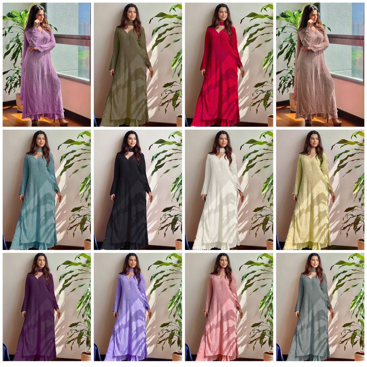 "Elegant Faux Georgette Set with Embroidery and GPO Lace Work"
