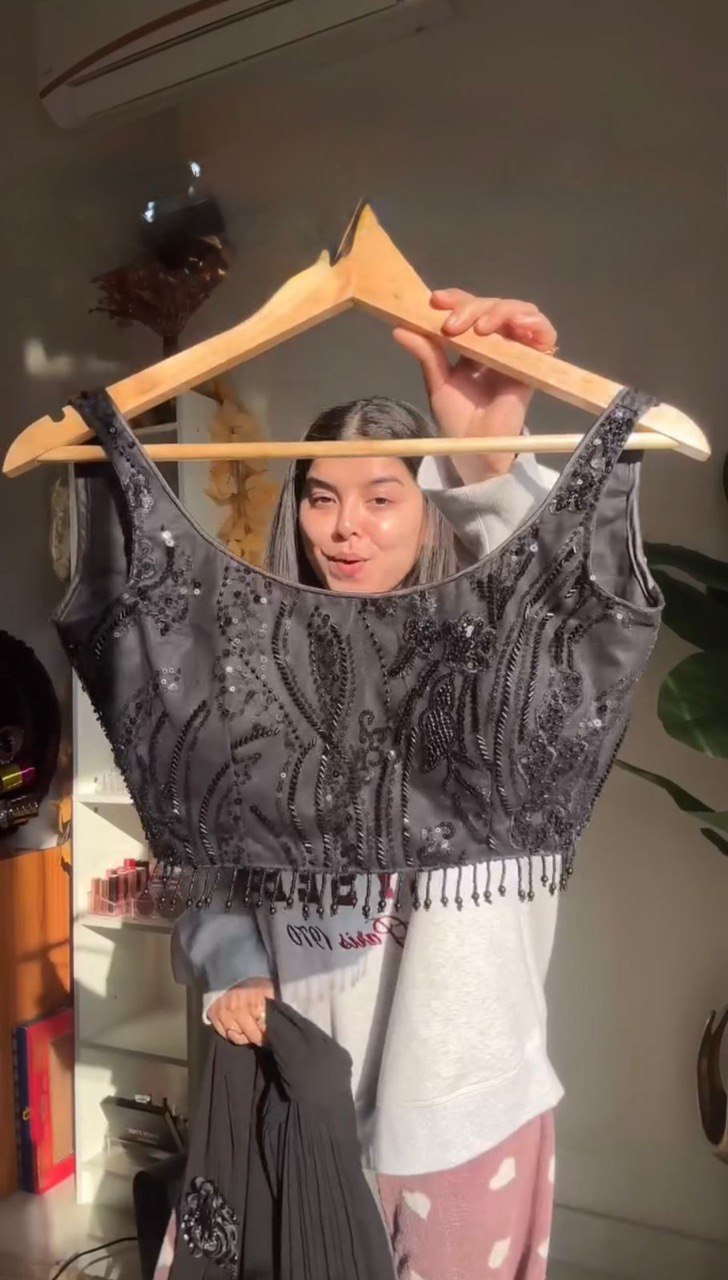 "Elegant Foux Gorgette Blouse, Ready-to-Wear Dhoti & Waist Belt Set with Thread & Sequence Work"