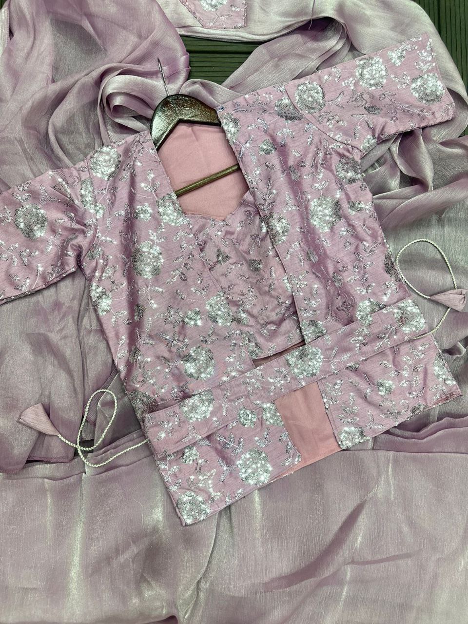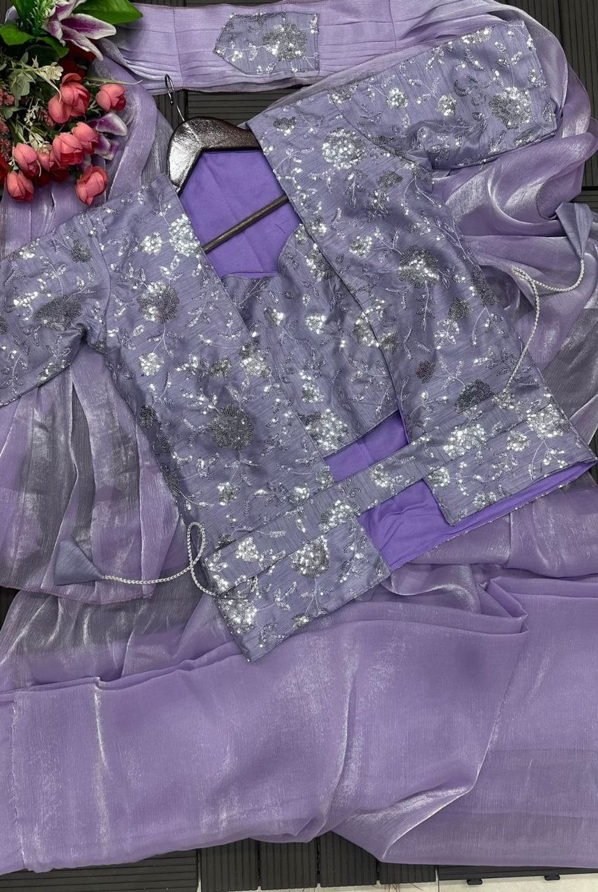"Elegant Heavy Barbari Saree Set with Embroidered Jacket, Blouse & Belt"
