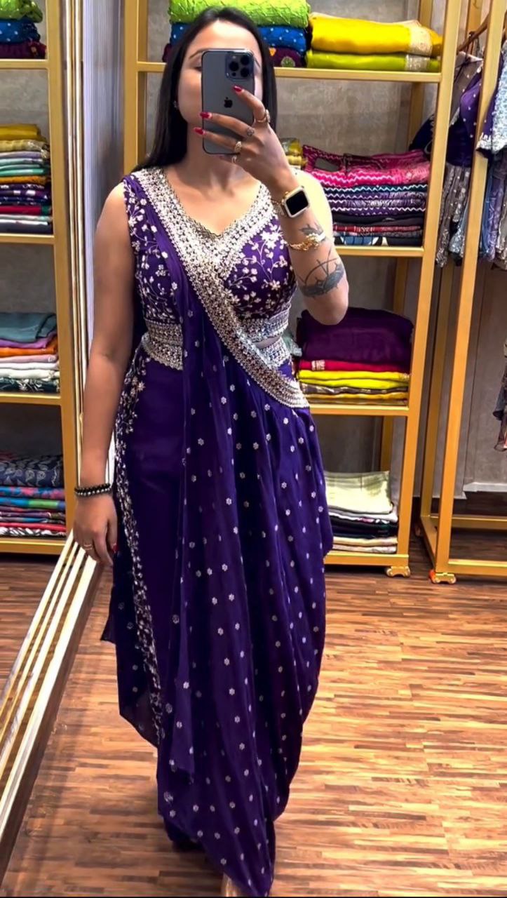 "Elegant Heavy Chinon Set with Thread & Sequence Work"