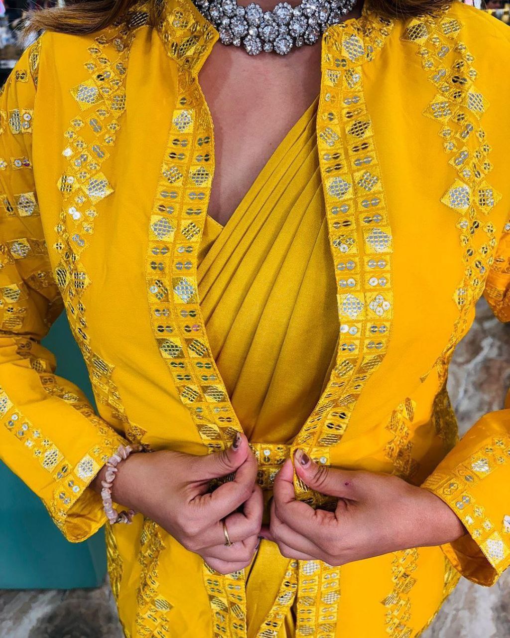 I’m in love with this saree! The fabric is light and easy to drape, and the colors are so vibrant. Got loads of compliments!