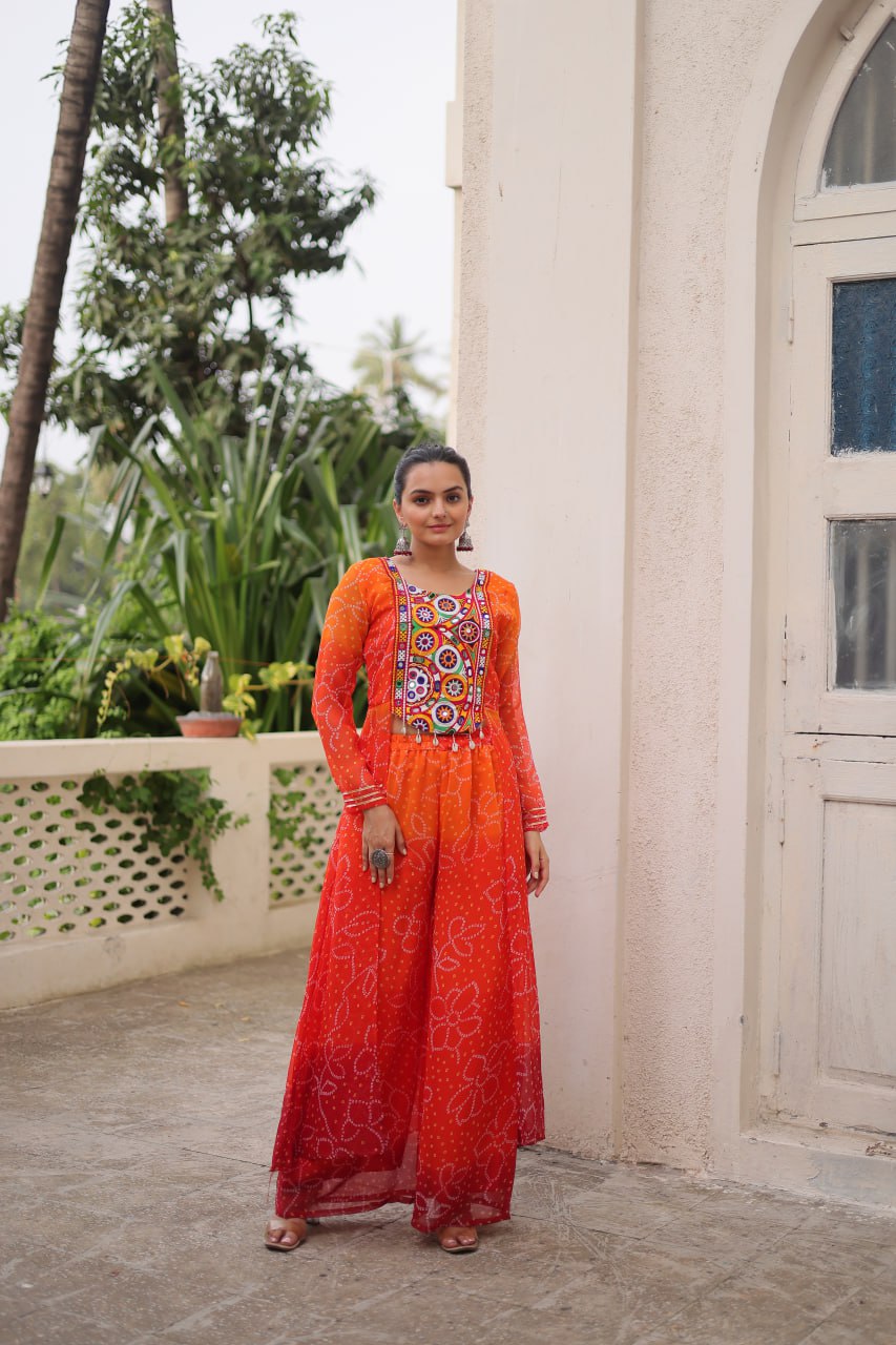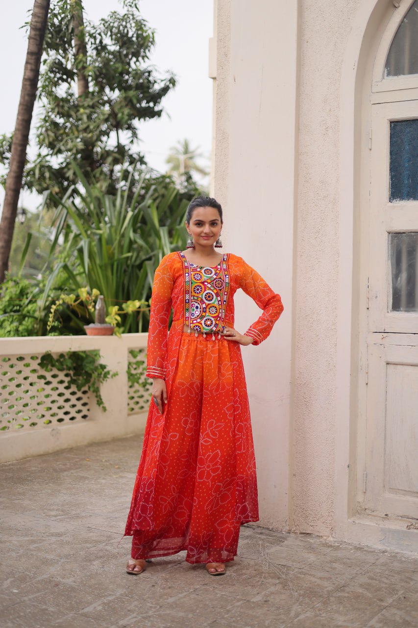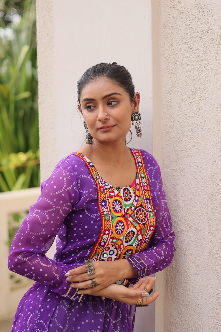Fabric & Work: Elegant Bandhani print with intricate Kutchi Gamthi patchwork