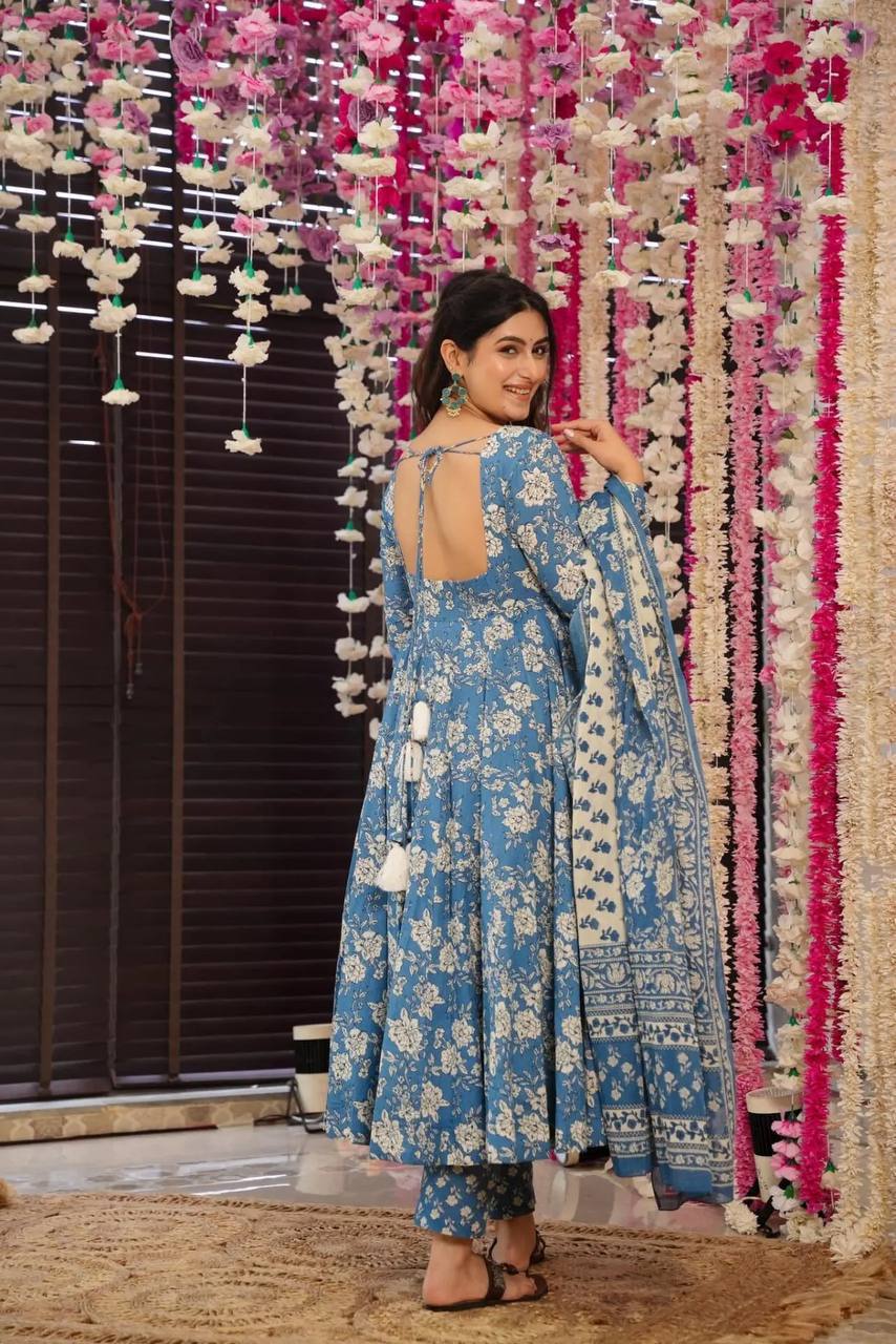 Flower print Pure cotton anarkali kurta pant with dupatta sets