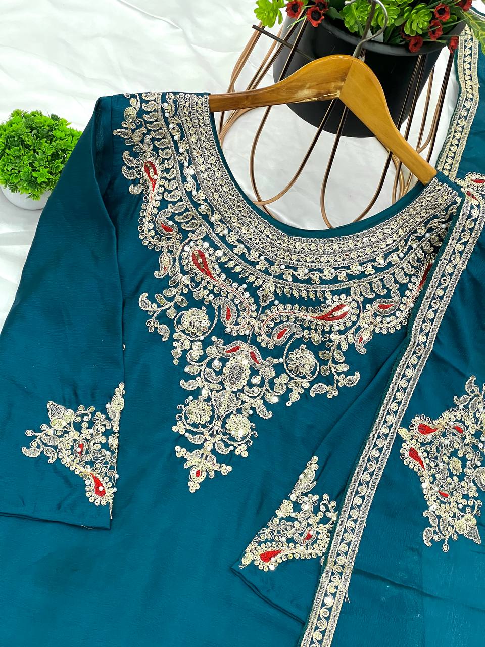 π₯ Presenting New Designer Collection in Pure Chinnon with Heavy Embroidery Coding Dori-Sequence Work β Top, Bottom, and Dupatta Set β Fully Stitched, Ready to Wear! ππ₯°