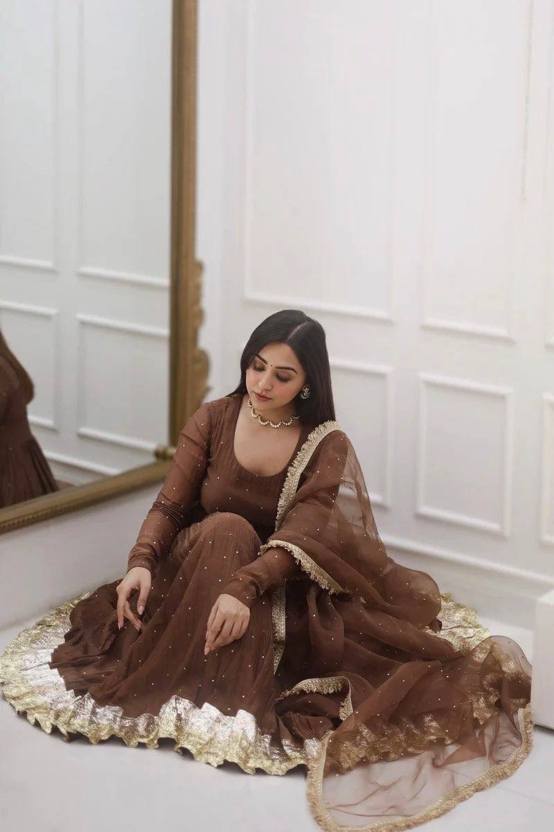 ✨ Full Moti Work Gown Set – Ready to Wear ✨