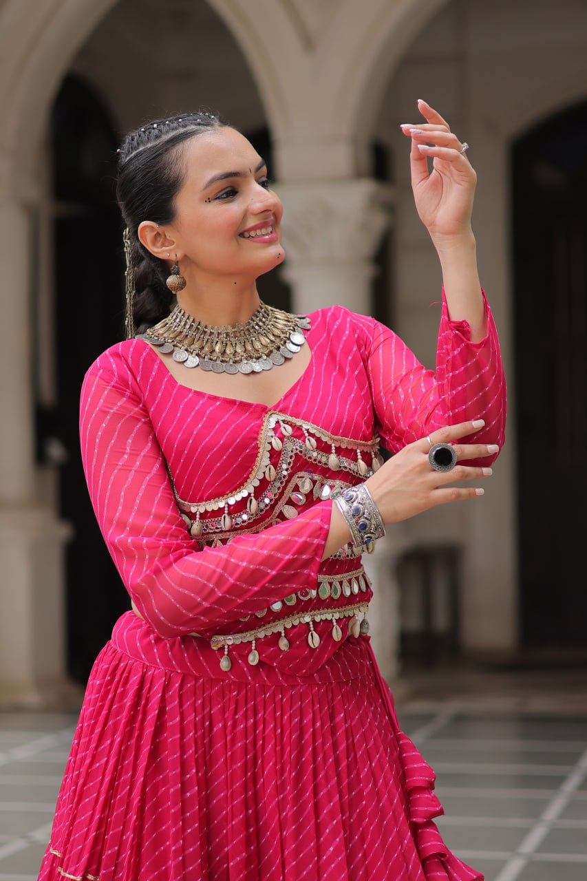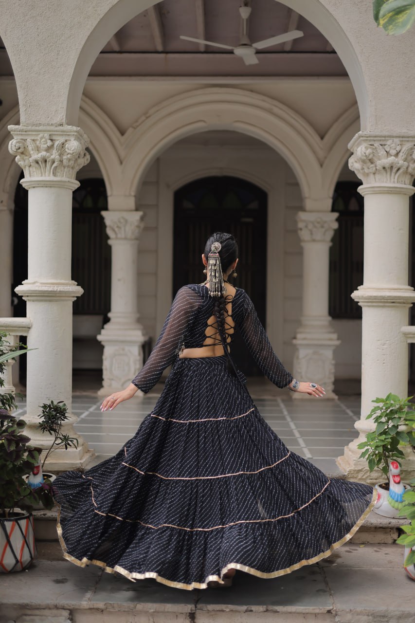 Fabric & Work: Elegant Leheriya Print with attractive Gota-Patti lace border