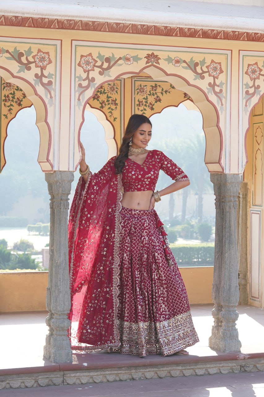 π Designer Pure Viscose Jacquard Fabric Lehenga Choli & Dupatta Set ππ»