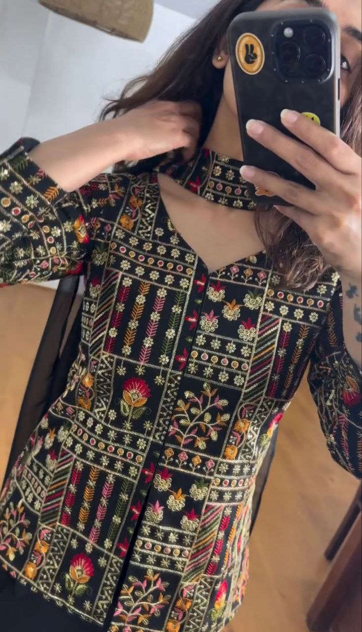 "Luxury Georgette Jacket & Plazzo Set with Embroidery"