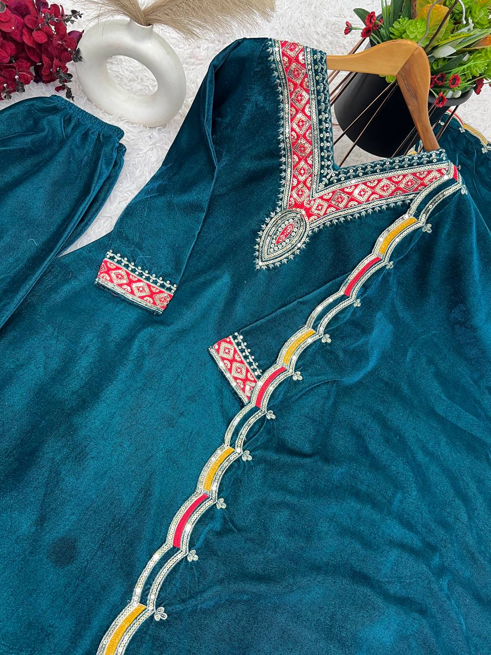 👗 Bottom Fabric: Viscose Velvet with Embroidery Sequence Work