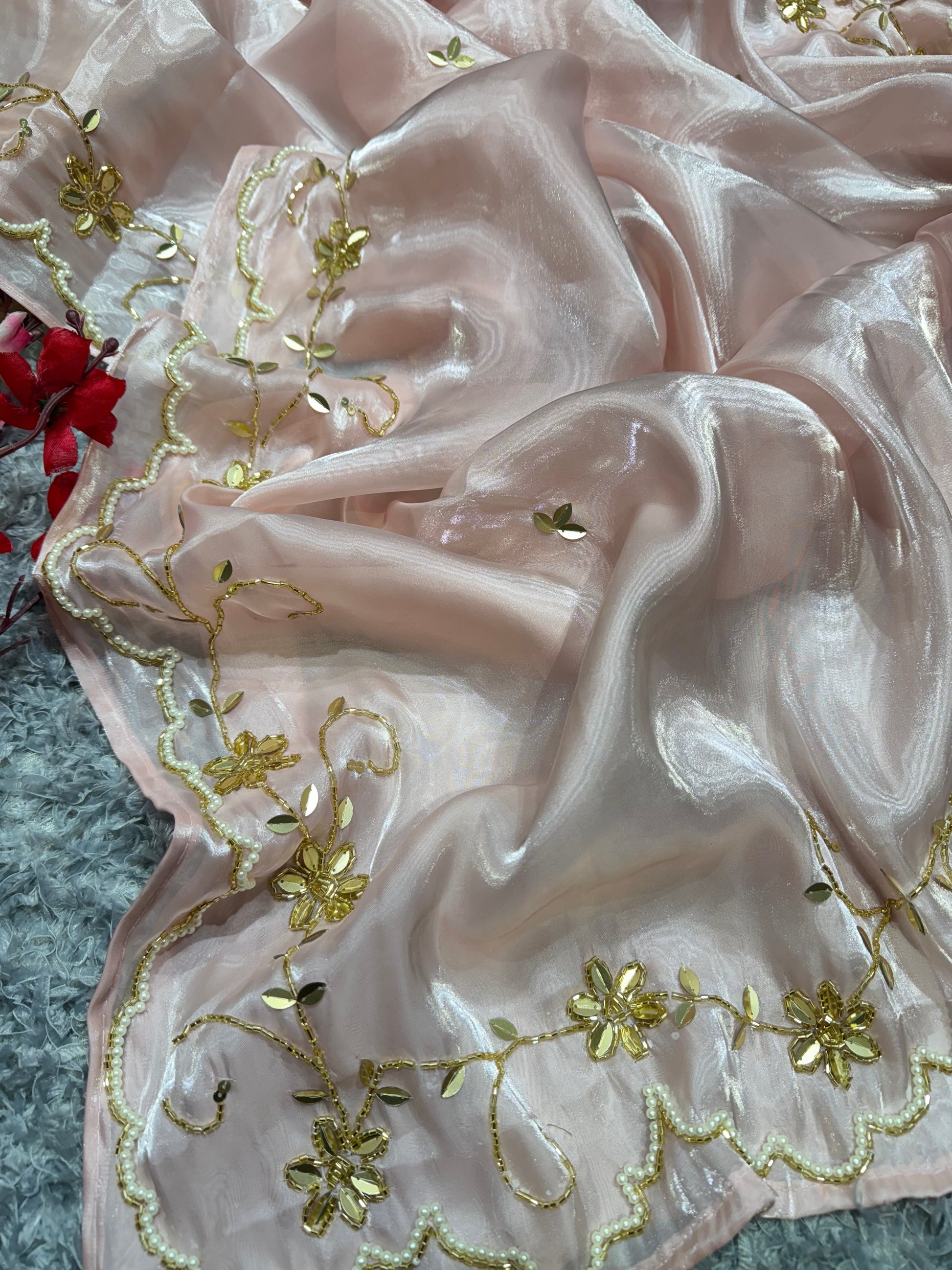 Blouse: Matching Jimmi Choo fabric, designed to complement the saree with equal grace