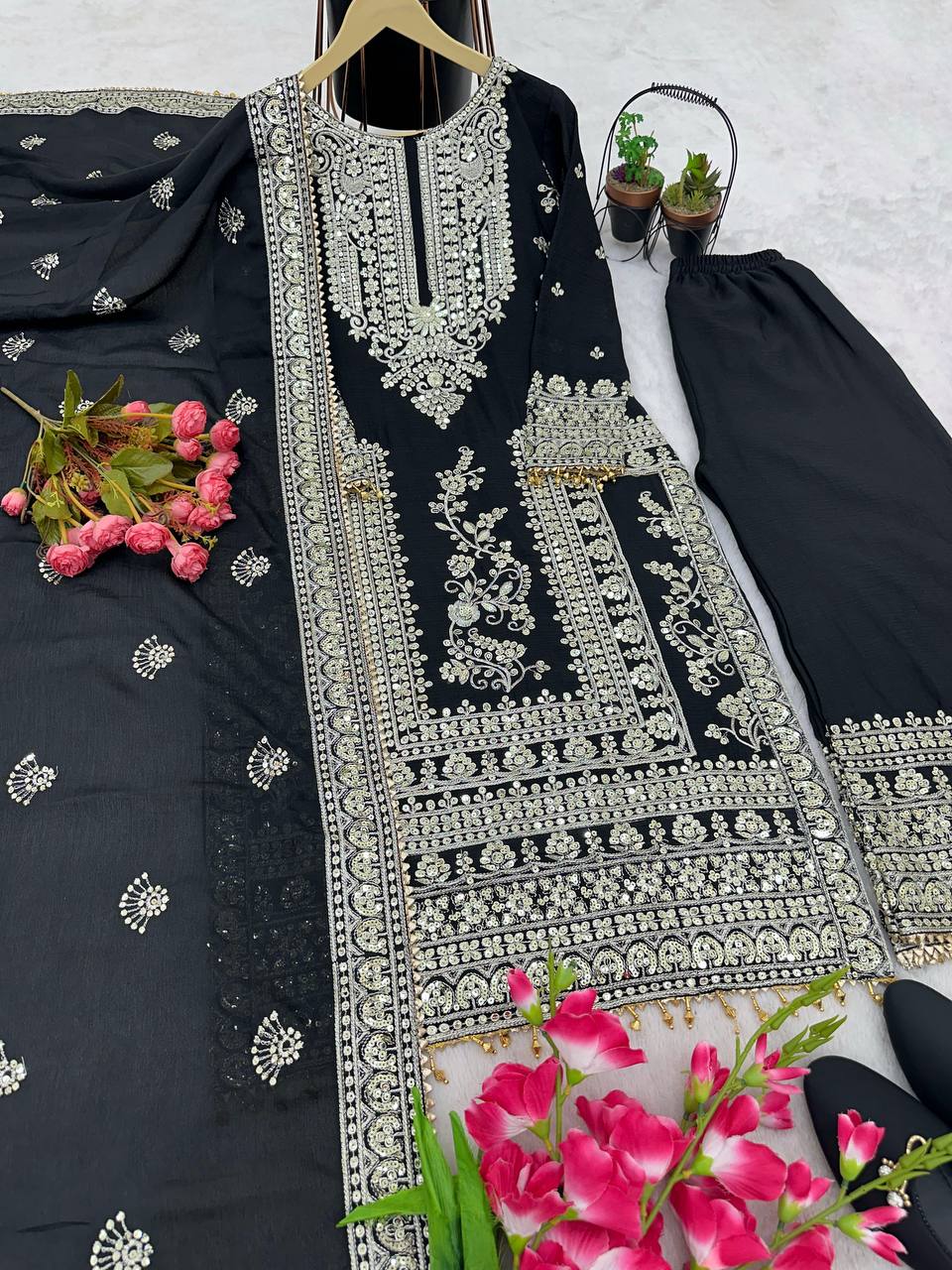 - Top Fabric: Pure Chinnon Silk with Heavy Embroidery, Coding, Dori, and Sequence Work (Full Sleeve)