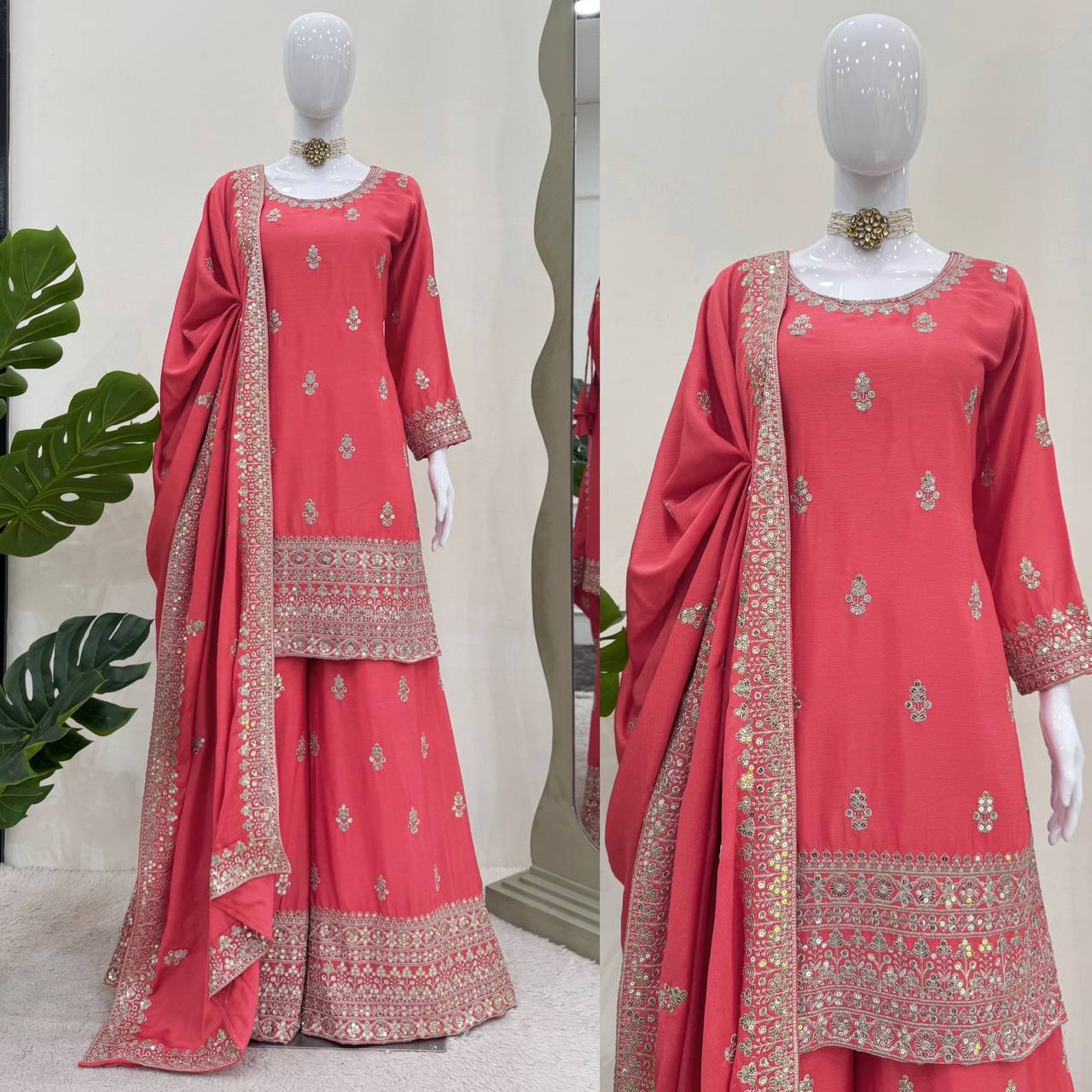 Pure Chinon Silk Kurta Palazzo with Dupatta