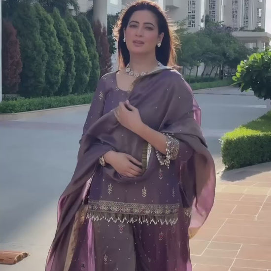 Top Fabric: Pure Twill Gold Net with heavy embroidery and 5 mm sequin work, featuring fancy latkan with sleeves