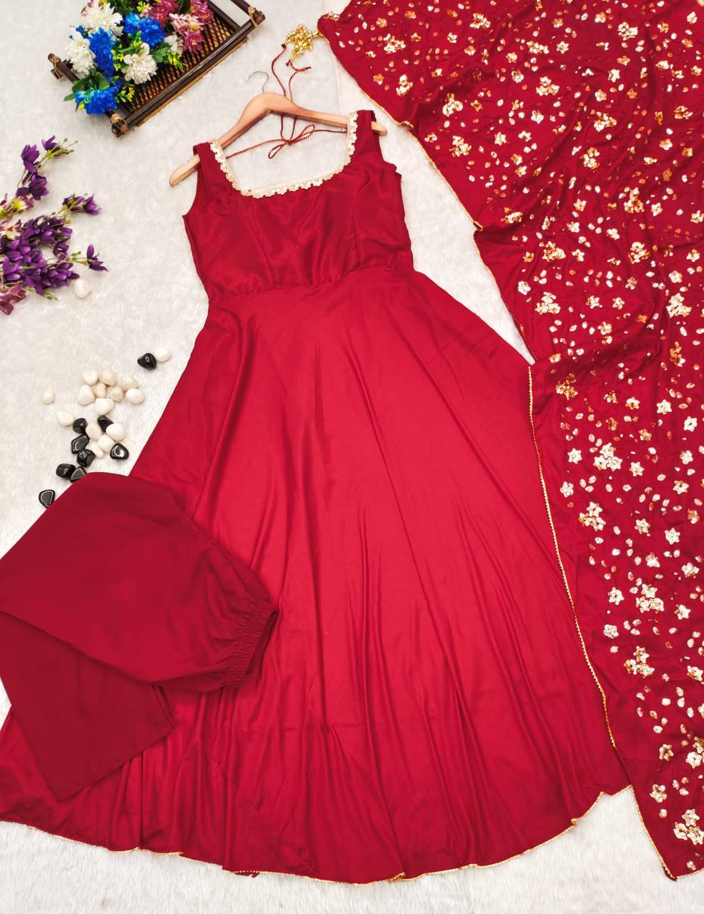 silk stylish anarkali gown pant with dupatta sets