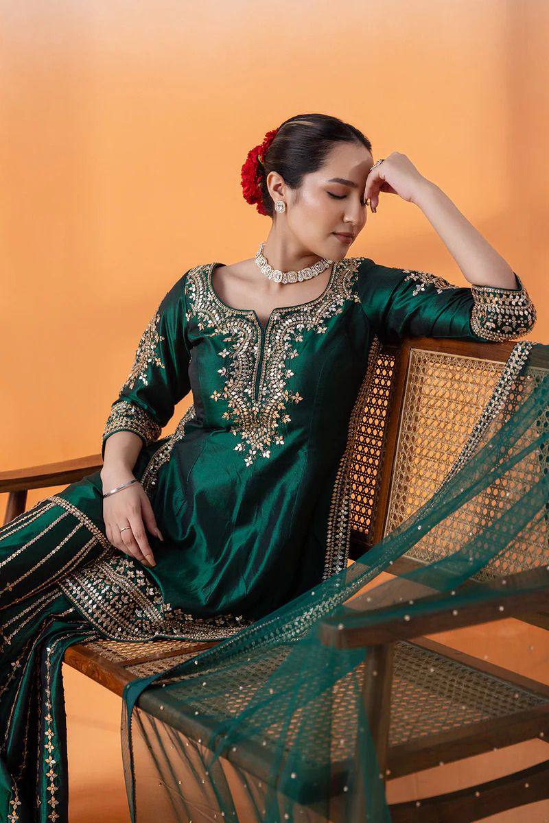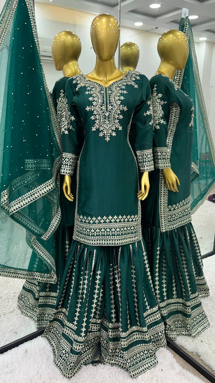 - Fabric: Pure Chinnon Silk with heavy embroidery and sequence work