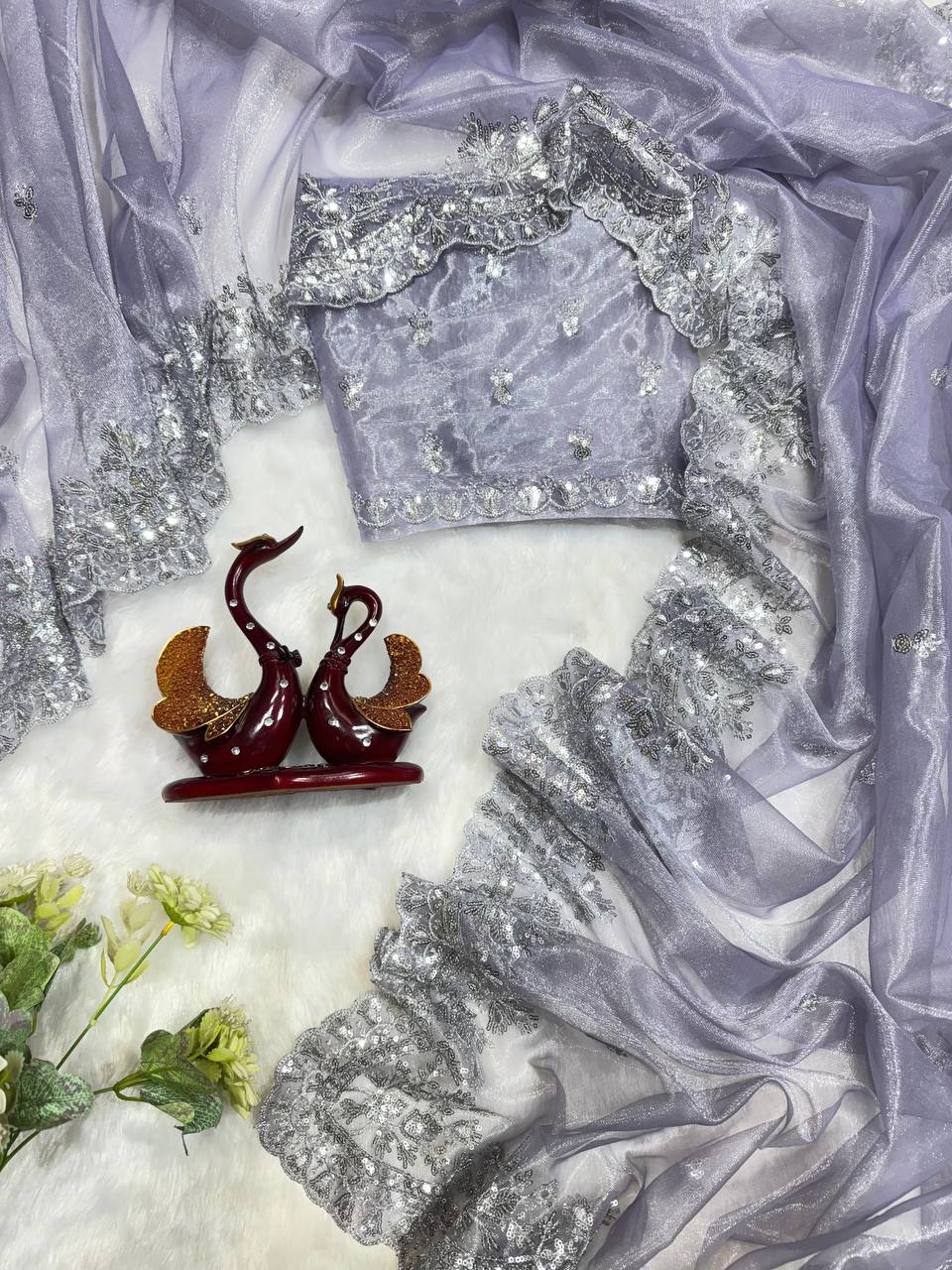 π Be the enthralling beauty of the evening by adorning this stunning sequined saree and blouse. A perfect blend of glamour and grace, itβs designed to make you shine at every occasion!