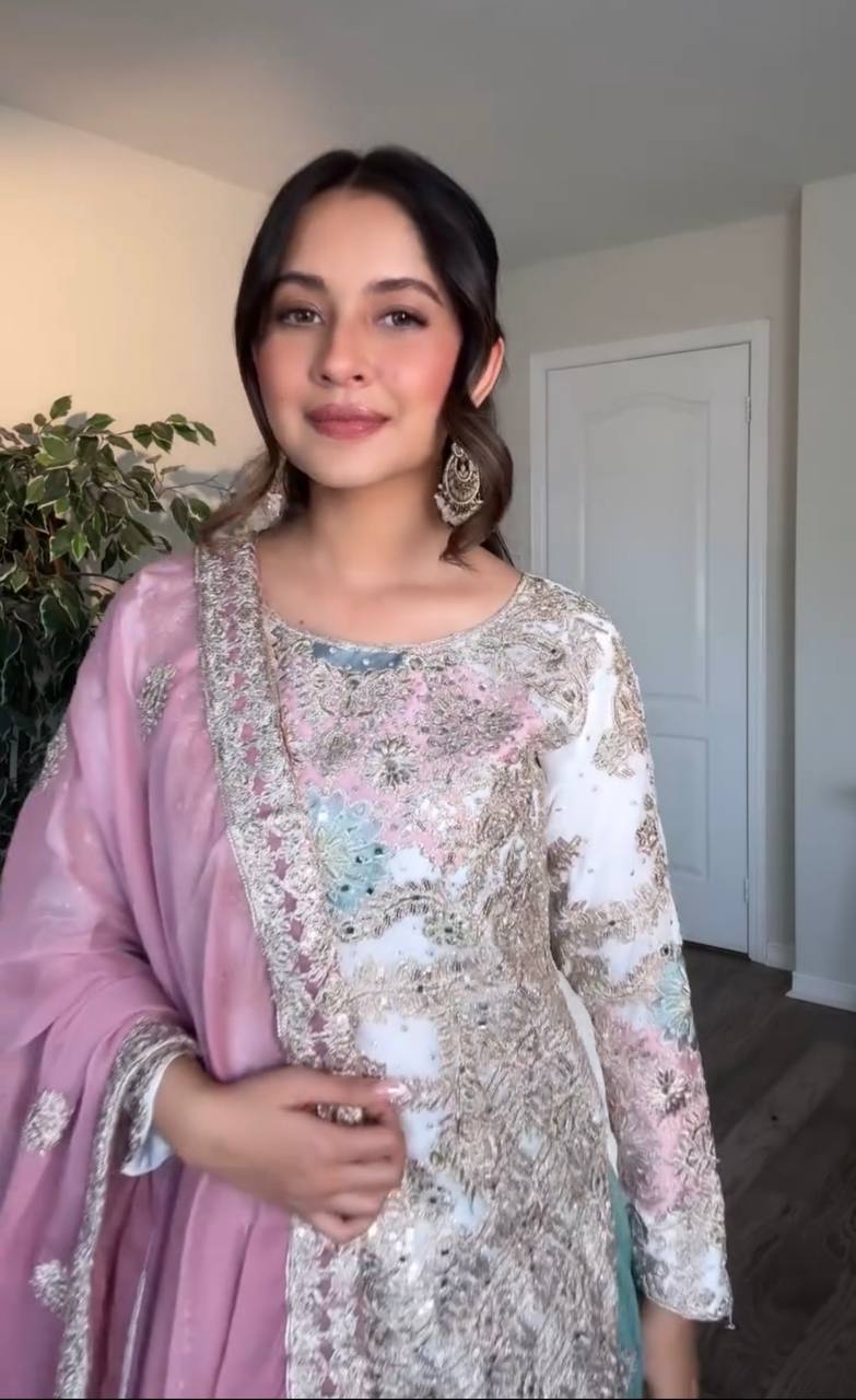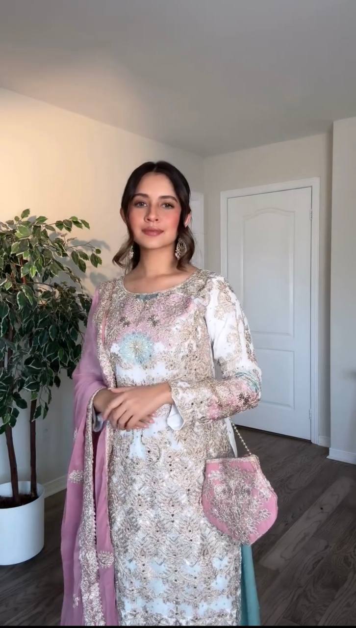 🔹 Work: Intricate 5mm Sequin Embroidery + Mirror Hand Work