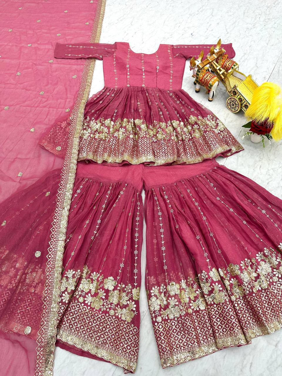 This Festival Top & Sharara Set is perfect for special occasions and celebrations. Featuring intricate 3mm sequence embroidery on a luxurious pure simmar fabric, this set promises a blend of elegance and comfort. The matching dupatta adds an extra layer of grace to complete the festive look. Available in a range of sizes with a rich flair and delicate finishing, this outfit is sure to be a standout at any event.