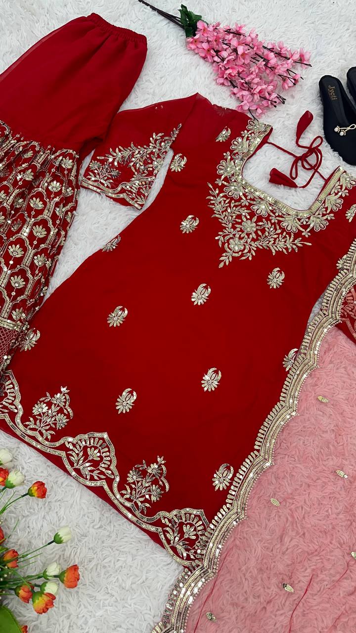 Elegant Fancy Top, Dupatta, and Fully Stitched Sharara Set β Perfect for Festive Occasions! ππ