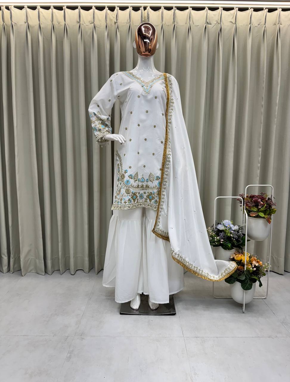 Here's the detailed description for the Eid Special Designer Trending Top with Sequence Embroidery Work with Sarara and Dupatta: