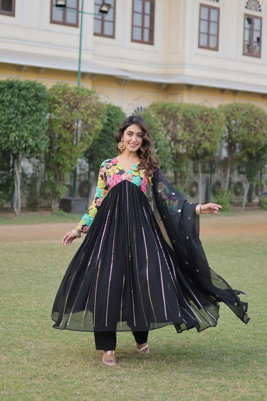 Women's designer alia cut kurti pant with Dupatta sets, 3 pc suit sets