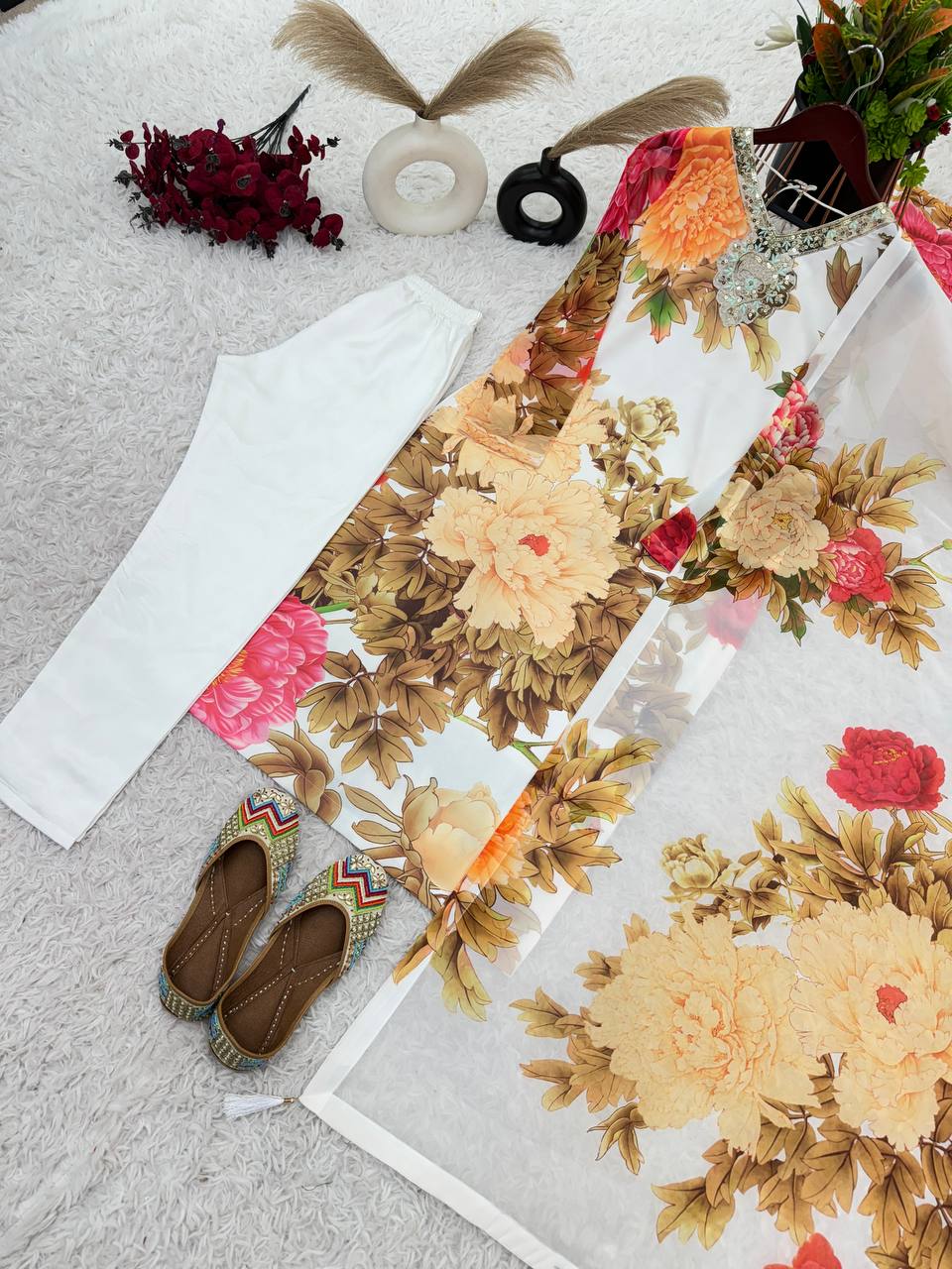 - Fabric: Heavy Faux Georgette with embroidery sequence work and stunning digital print.