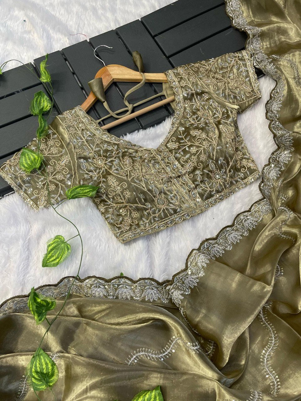 Blouse: Pure Soft Zimmy Choo Silk with full sequins work, designed to complement the saree’s elegance