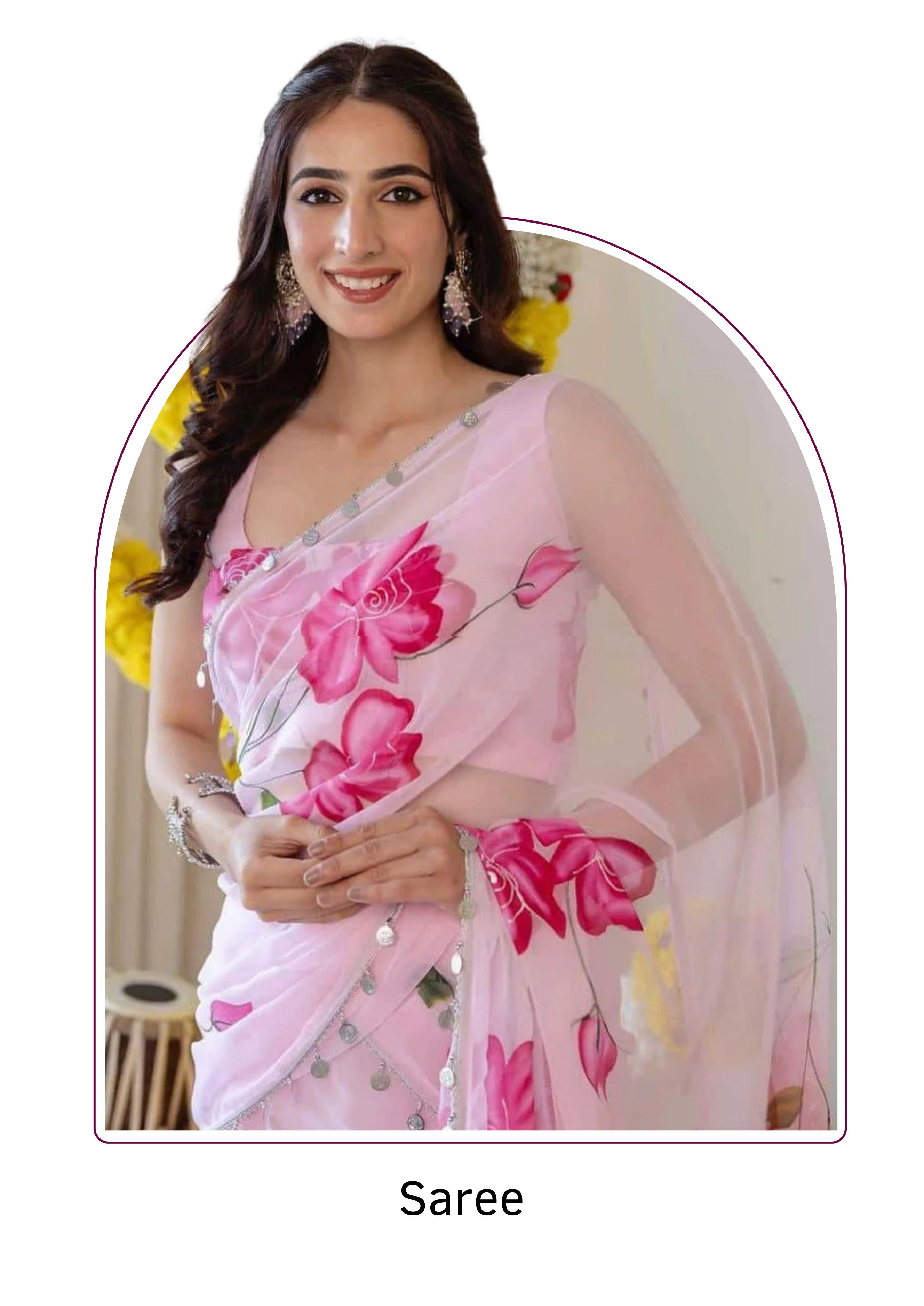 "Elegantly Embroidered Heavy Chinon Saree Set with Jacket and Belt"