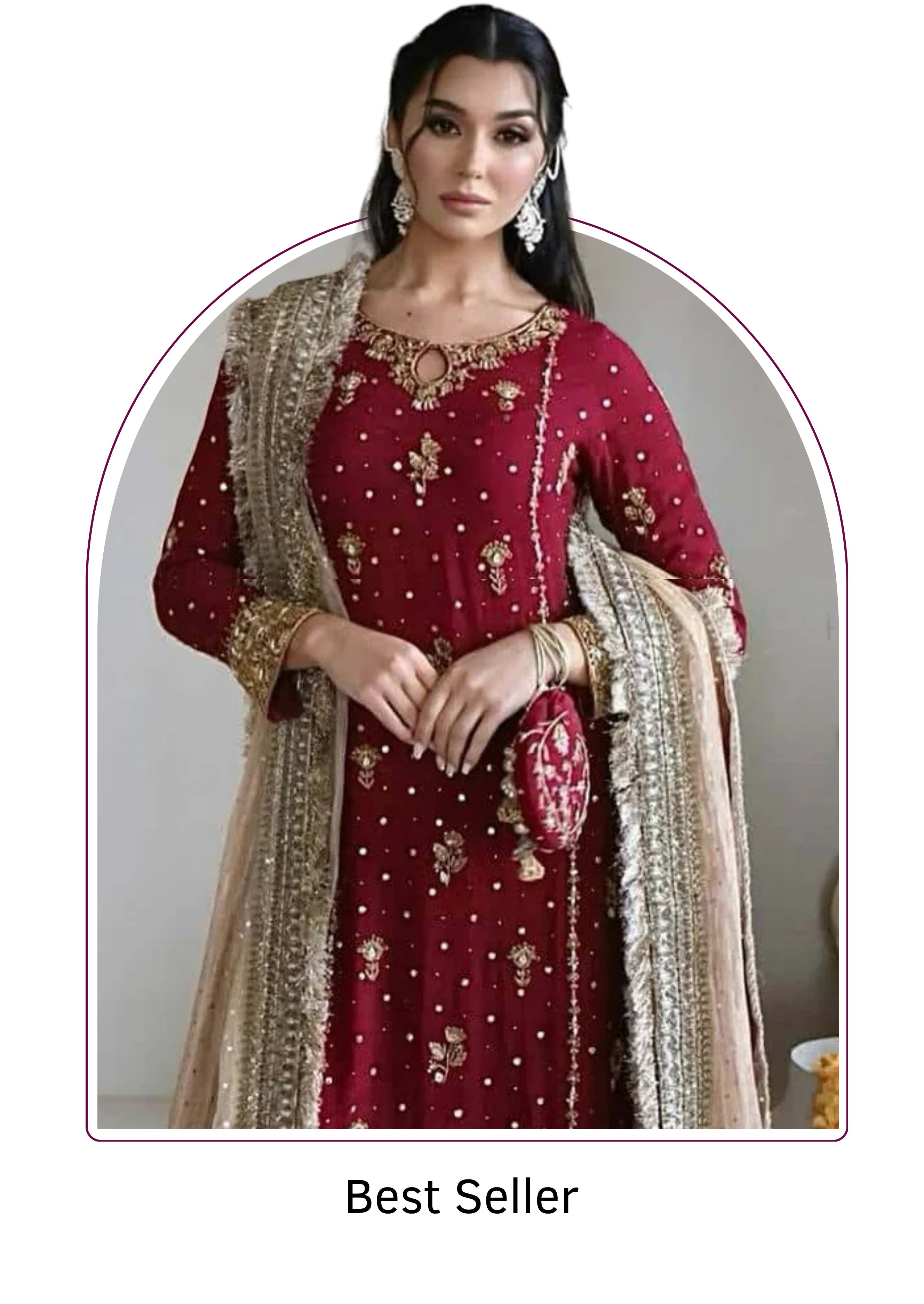 The detailing on this suit is incredible. Pictures don’t do justice—it’s even more beautiful in person. A must-have for your occasion wear collection!