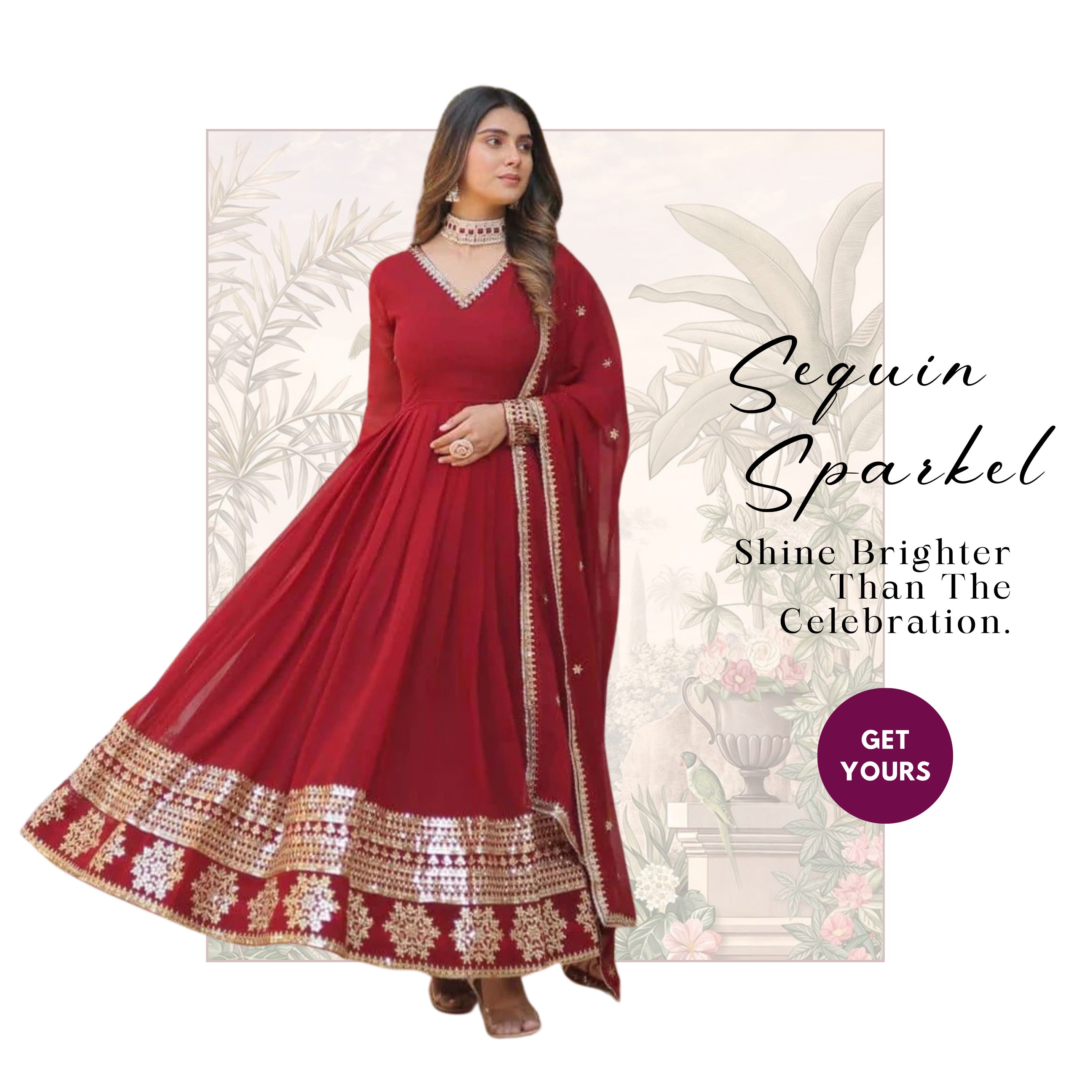 "Elegant Chinon Silk Kurti-Plazzo Set with Sequins & Zari Embroidery"