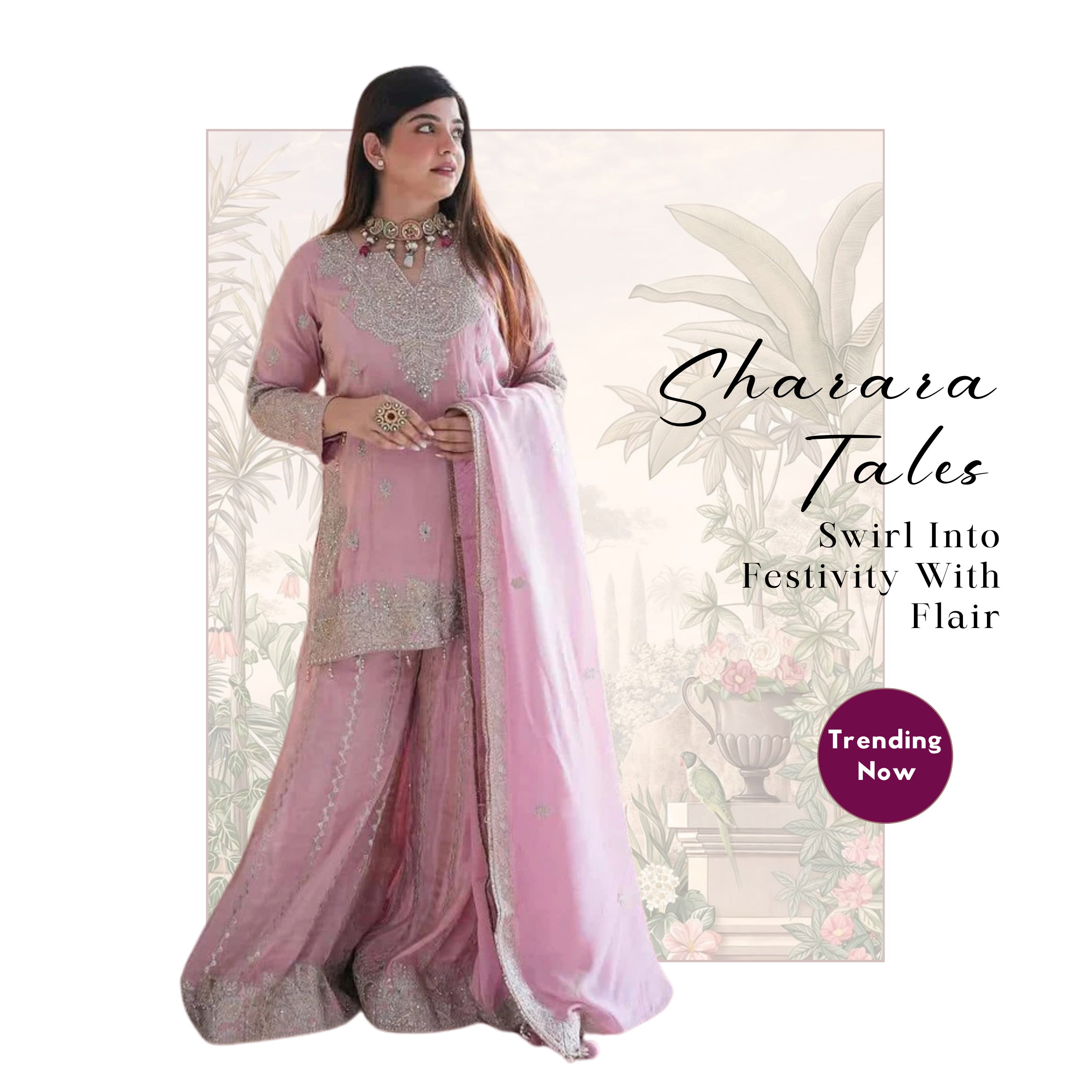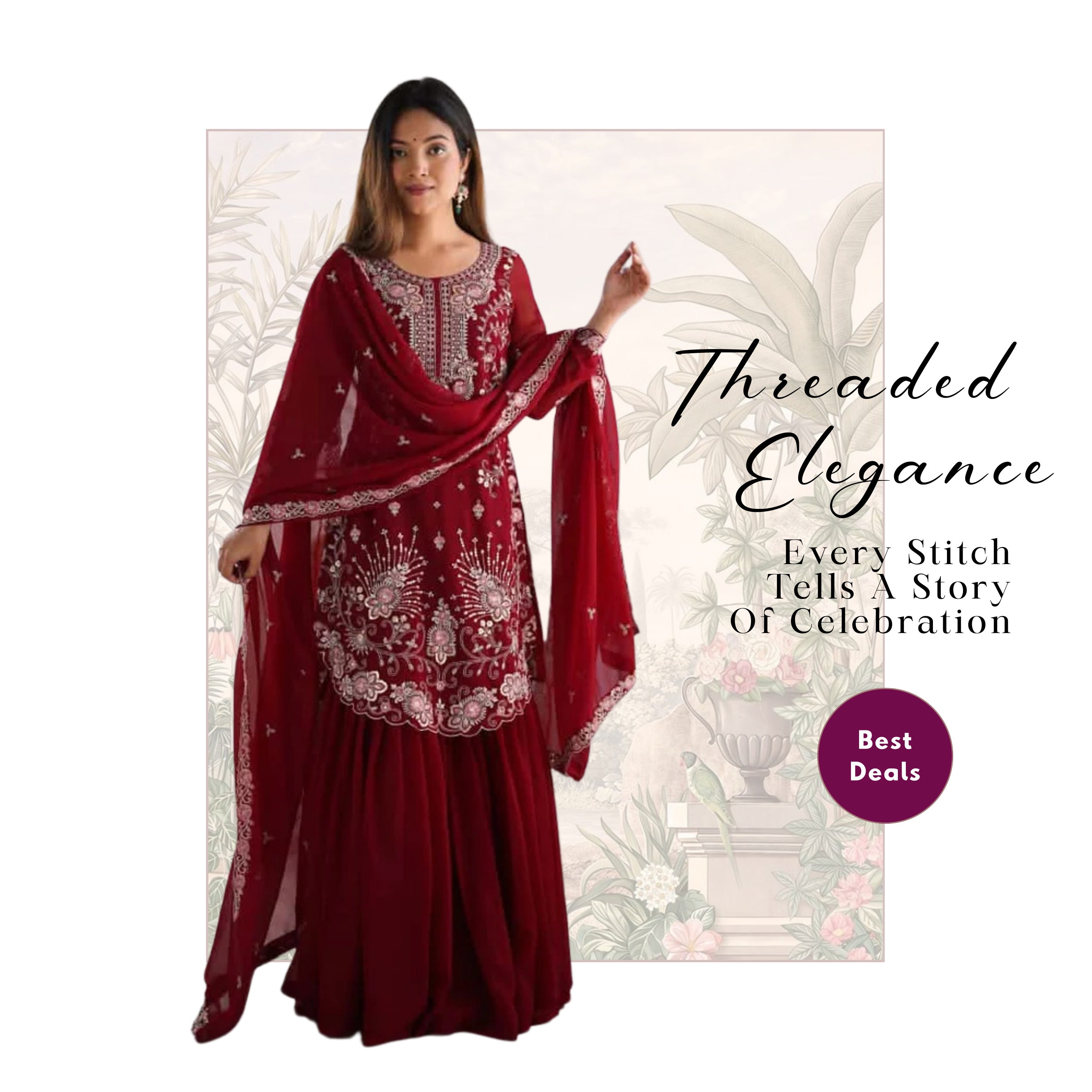 “Chinon Sequence Embroidered Suit Set with Sharara & Net Dupatta – Festive Elegance”